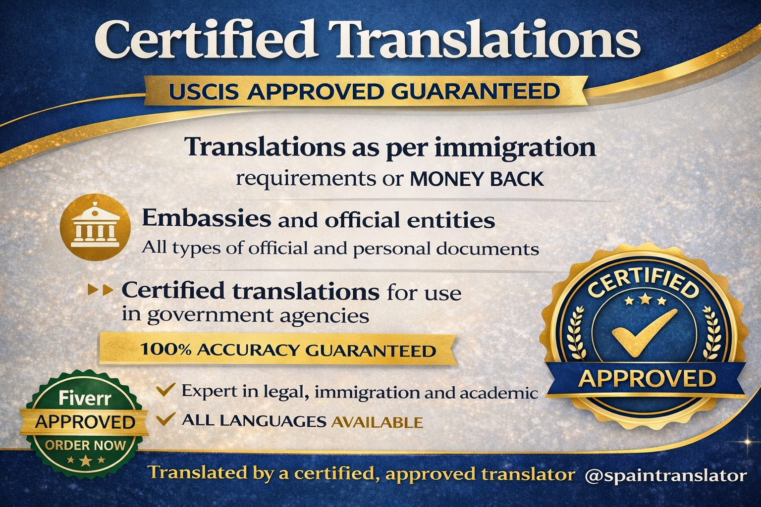 Need a certified translation for your USCIS application or green card process? I specialize in USCIS-approved translations that meet all formatting and certification requirements. Each document is delivered ready for submission to immigration authorities and other official institutions.